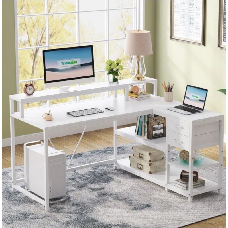 L-shaped computer desk with monitor stand
