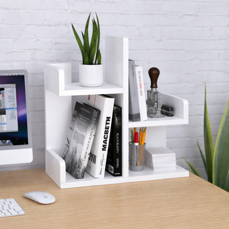 Надставка для письмового столу NS-3 від компанії UkrLoft – відмінне рішення для організації вашого робочого місця. Ви зможете скласти в неї всі блокноти та тетради наприкінці робочого дня. На нижніх ярусах можуть поміститися робочі приладдя, книги або візитки з кульковими ручками. На верхніх ярусах можна розташувати елементи декору, горщик для квітів або пенал для канцелярії. Саму надставку можна поставити у вільний кут столу, де вона не заважатиме. Матеріал виготовлення – ламіноване ДСП у білому кольорі товщиною 16 мм. Надставка NS-3 UkrLoft – повноцінна альтернатива настінній полиці. У той же час це витончена стильна річ, яка підкреслить ваш нестандартний підхід до оформлення робочого простору.