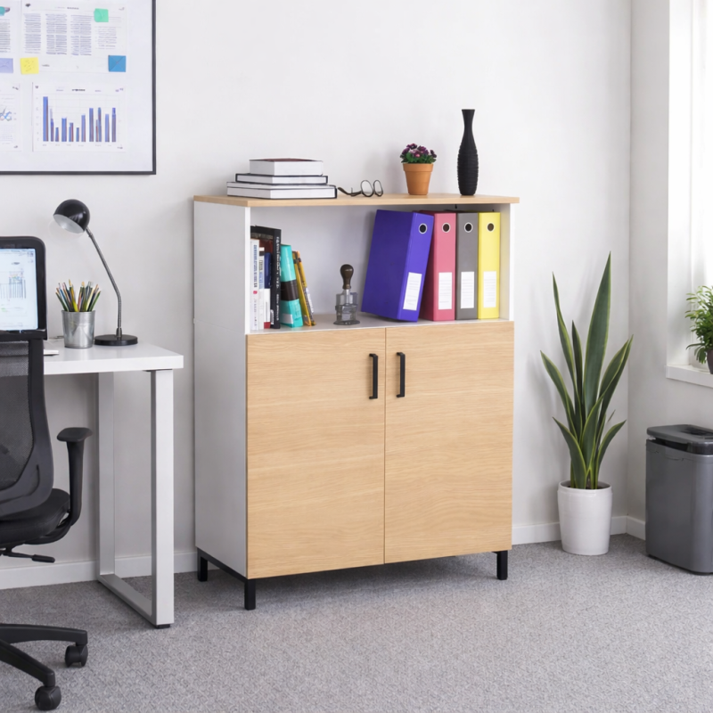 LTO-900-1200 — містка офісна тумба у лофт-естетиці з продуманою геометрією: 90×120×42 см забезпечують великий обсяг зберігання при зручній глибині. Дводверна конфігурація охайно приховує документи, витратні матеріали та дрібну техніку, а конструкція на ніжках полегшує прибирання під меблями та додає візуальної «легкості». ЛДСП 16 мм декори легко поєднати з сучасними інтер'єрами, тоді як металевий каркас із профільної труби 20×20 мм відповідає за жорсткість і довговічність. Вага близько 35 кг гарантує стабільність у щоденному використанні.