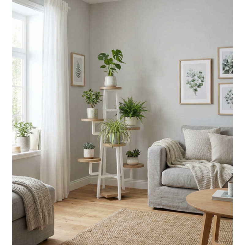 Оновіть свій простір з вишуканою підставкою «Сарамага» від українського виробника меблів UkrLoft. Ця модель — ідеальний вибір для тих, хто цінує сучасний стиль лофт, практичність та якість виконання. Вона гармонійно доповнить інтер'єр вашої вітальні, спальні, офісу або стане окрасою критої тераси чи патіо. Завдяки різнорівневій конструкції, кожна рослина отримує достатню кількість природного світла, що сприяє їхньому здоровому та гармонійному зростанню. Ваші вазони більше не затінюватимуть один одного. Це більше, ніж просто підставка для квітів. Використовуйте її як стильний стелаж для демонстрації сімейних фотографій, сувенірів з подорожей, книг або улюбленого декору. Вона додає інтер'єру індивідуальності та затишку. Каркас виготовлено з посиленої сталевої труби перерізом 20×40 мм, що гарантує стійкість конструкції навіть при повному завантаженні важкими горщиками. Полиці виконані з якісної ДСП товщиною 16 мм, стійкої до зносу. Ми використовуємо лише сертифіковані матеріали, що гарантує безпеку у використанні в житлових приміщеннях. Замовляйте підставку «Сарамага» вже сьогодні та створіть свій ідеальний зелений куточок з меблями від UkrLoft!