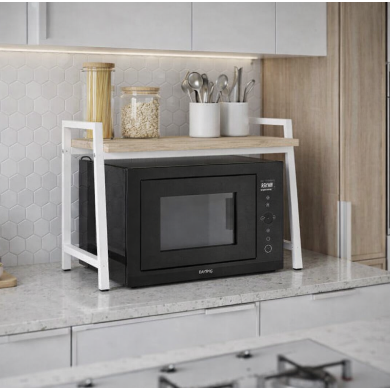 Підставка Rock-206 — компактне та надійне рішення для організації кухонного простору. Вона піднімає мікрохвильову піч на зручну висоту, звільняє місце на стільниці та додає кухні акуратного, сучасного вигляду. Каркас виконаний із міцного металевого профілю 20×20 мм з покриттям — стійкий до щоденного навантаження та легко вписується у світлі інтер’єри. Полиця з ламінованого ДСП 16 мм практична: стійка до вологи, не потребує складного догляду та швидко очищається.