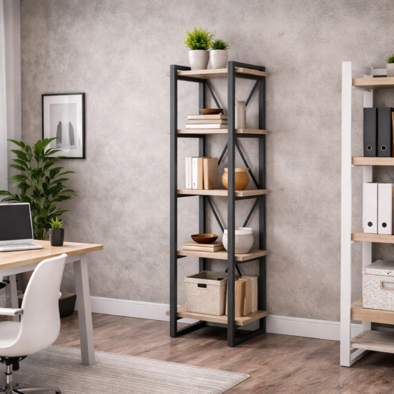 Шукаєте стильне рішення для невеликої кімнати? Вузький стелаж Айсберг Х2 — це ідеальний вибір для тих, хто цінує простір. Завдяки ширині всього 48 см, він легко поміститься там, де не стануть звичайні шафи: у вузькому коридорі, ніші у ванній кімнаті або в кутку домашнього офісу. Особливість моделі — чорний колір металевого каркасу. Це надає меблям візуальної легкості та свіжості, що особливо важливо для невеликих приміщень. Незважаючи на компактні розміри, це не хитка етажерка. Каркас виготовлено з металевого профілю 20×40 мм, що забезпечує неймовірну стійкість. Ламіноване ДСП товщиною 16 мм витримує значні навантаження. Ви можете сміливо ставити важкі книги, документи або великі вазони з квітами — полиці не прогинаються. Чорна структура гармонійно поєднується з будь-яким кольором стін та декору, додаючи інтер'єру сучасності. Купити чорний стелаж Айсберг Х1 — це додати світла та порядку у ваш дім.