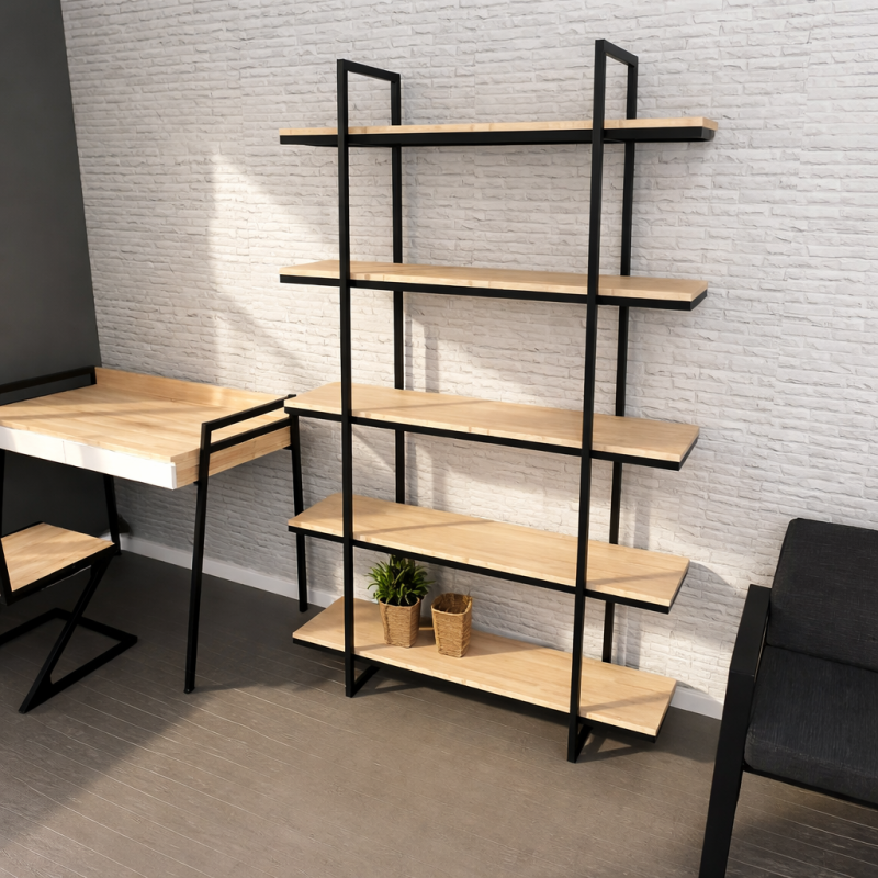 Офісний стелаж AL3 від виробника UkrLoft — це сучасне рішення для організації простору, яке поєднує високу функціональність та стриману естетику. Завдяки продуманим габаритам 200×130×35 см, модель забезпечує велику корисну площу для зберігання, не перевантажуючи інтер’єр. Конструкція виготовлена з металевого каркасу з профільної труби 20×20 мм, що гарантує стабільність, жорсткість і довговічність навіть при щоденному використанні. Полиці з ламінованого ДСП товщиною 16 мм додають тепла та затишку, гармонійно контрастуючи з індустріальним характером металу. Відкриті полиці створюють відчуття легкості та дозволяють зручно розмістити книги, документи, папки, офісні аксесуари або декоративні елементи. Такий формат ідеально підходить для підтримання порядку та швидкого доступу до потрібних речей. Дизайн у стилі LOFT підкреслюється строгими геометричними формами, мінімалізмом і універсальністю, завдяки чому стелаж AL3 однаково добре виглядає у робочому кабінеті, сучасному офісі, коворкінгу або вітальні. Це не просто система зберігання, а стильний акцент, що формує характер простору.