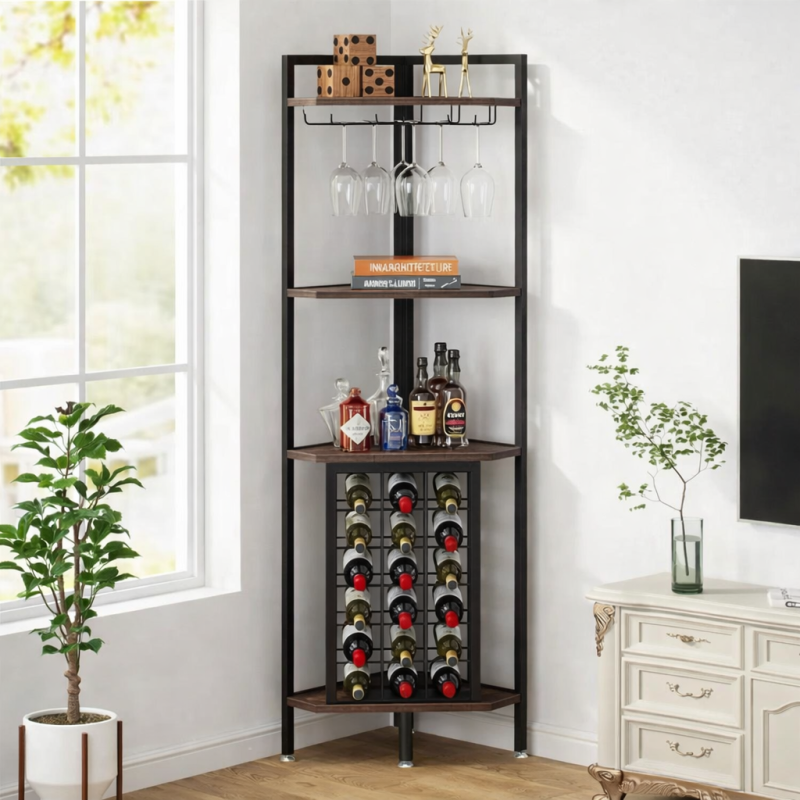 Кутовий стелаж 4-рівневий з підставкою для склянок — 160×40×40 см
