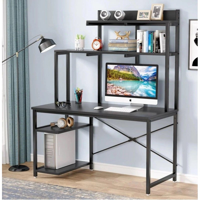 Комп'ютерний стіл для домашнього офісу з поліцями поєднує компактний формат роботи та зберігання в одному модулі. Вбудовані книжкові поліці зручно тримають документи, бокси, книги та декор, звільняючи стільницю для техніки та щоденних завдань. Конструкція виготовлена з ДСП 16 мм та металевого каркаса 20×40 мм — це гарантує жорсткість і стабільність в каждоденному користуванні. Розміри 172×120×60 см дозволяють ергономічно розмістити монітор/ноутбук, клавіатуру та органайзери, не перевантажуючи простір біля стіни, а 5 регульованих ніжок допомагають вирівняти стіл на нерівній підлозі та захищають покриття від царапин. Доступні чорний, білий, дуб сонома, дуб родос, горіх декори — легко підібрати під підлогу та іншу меблі у стилі сканді/лофт/сучасна класика.