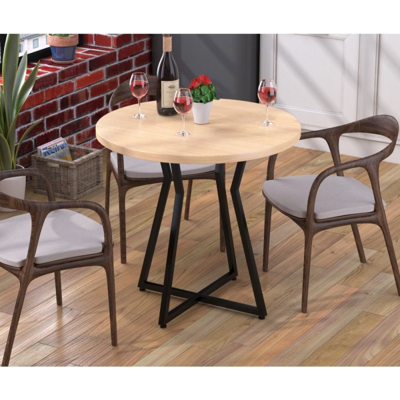 Кейтлін — компактний круглий стіл у лофт-естетиці для кухні, кавової зони чи невеликої їдальні. Діаметр 700 мм з висотою 75,2 см забезпечує зручну посадку 2–3 осіб, а стільниця із ДСП 16 мм витримує ежеденне використання. Сталевий каркас із профільної труби 20×40 мм із порошковим фарбуванням у чорному або білому кольорі додає жорсткості та виразного індустріального акценту. Доступні чорний, білий, дуб сонома, дуб родос, горіх декори — легко поєднати зі стільницями/фартухом кухні. Лаконічна геометрія не перевантажує простор, тому стіл уречений у студіях та міні-кухнях — замовляйте з доставкою по Україні.