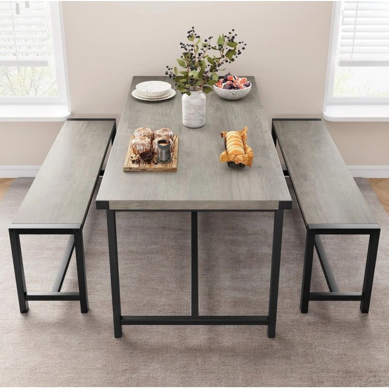 Набір обіднього столу на 4 персони з 2 металевими дерев’яними лавками