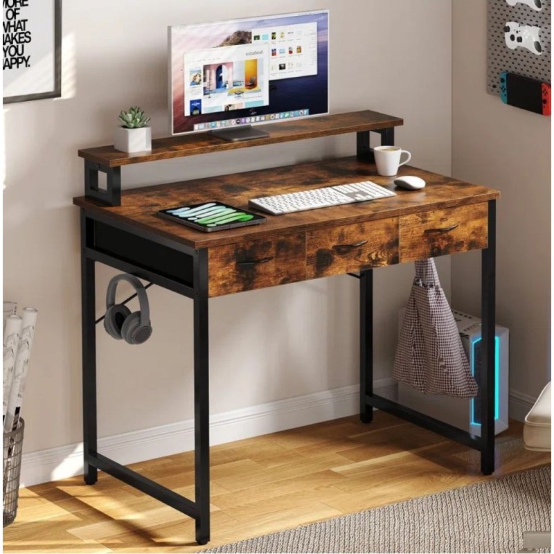 Комп'ютерний стіл з висувними ящиками підставкою для монітора та гачками