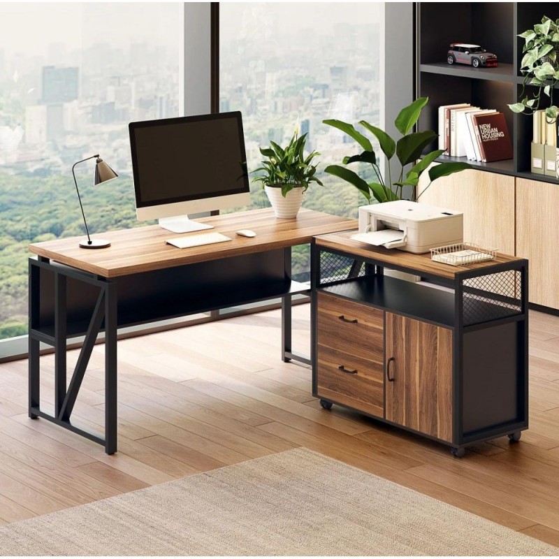 Г‑подібний письмовий стіл із шафою для файлів — 140×60×75 см