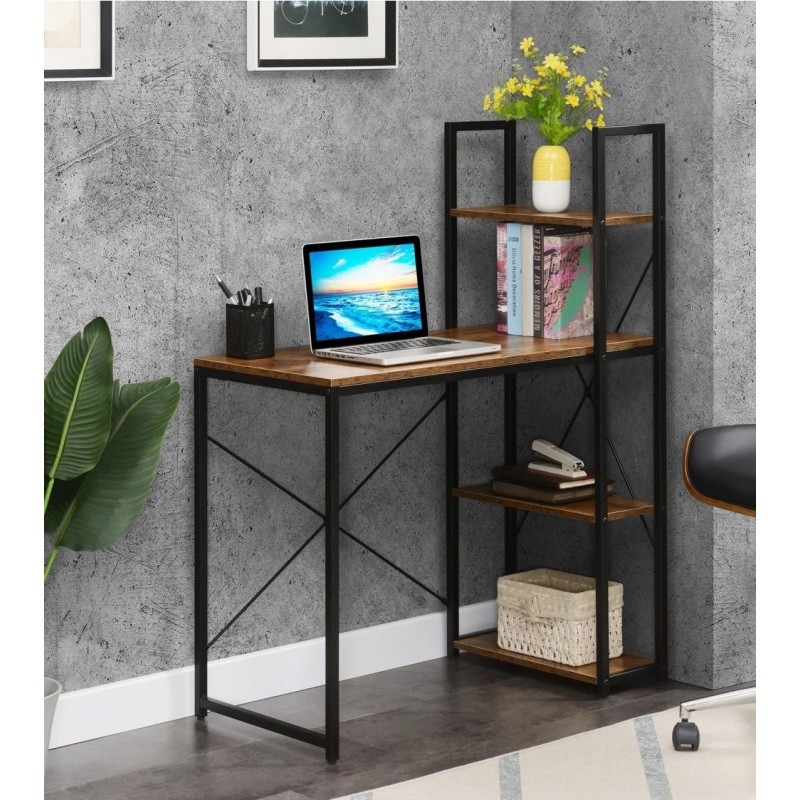 Представляємо кутовий листовий стіл "Gerell" від ТМ UkrLoft - ідеальне рішення для ефективного використання простору вашого офісу чи навчального кутка. Стільниця досить містка для ноутбука, лампи та канцелярії, а чотири багаторівневі поліці з ДСП надають додаткового місця для книг, файлів або декору.