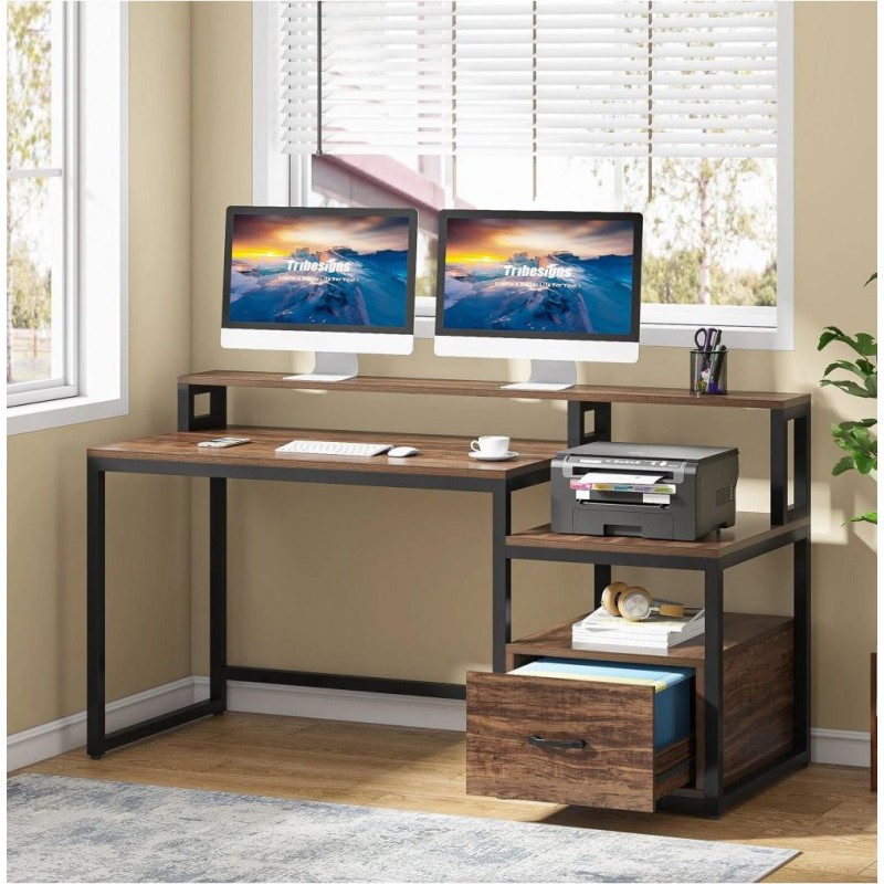 Письмовий стіл із полицями та ящиком для файлів (154 × 60 × 90 см)
