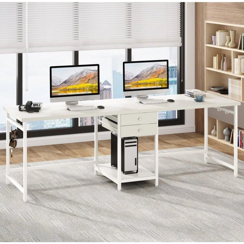 Два окремі ящики надають достатньо місця для зберігання паперів, гаджетів чи канцелярії. Також передбачені зручні гачки для навушників або рюкзака , які допомагають упорядкувати простір. Регульовані ніжки та протиковзкі підкладки гарантують, що стіл буде рівним навіть на нерівній поверхні. Стильна прямокутна конструкція легко вписується в будь-яку среду — офіс, навчальний простір, ігрова зона або домашній кабінет. Цей стіл — функціональне, стильне та надійне рішення для комфортної спільної роботи на одній поверхні.