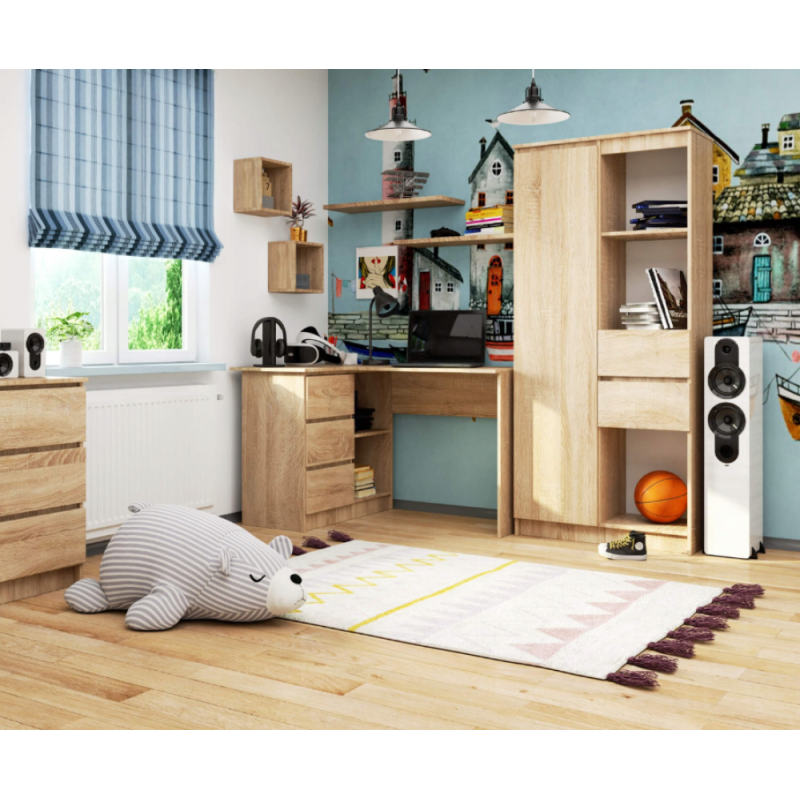 Кутовий стіл B16 — 3 шухляди, 2 полиці, дуб сонома