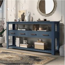 Сучасний консольний стіл з 4 ящиками та 2 полицями темно-синього кольору