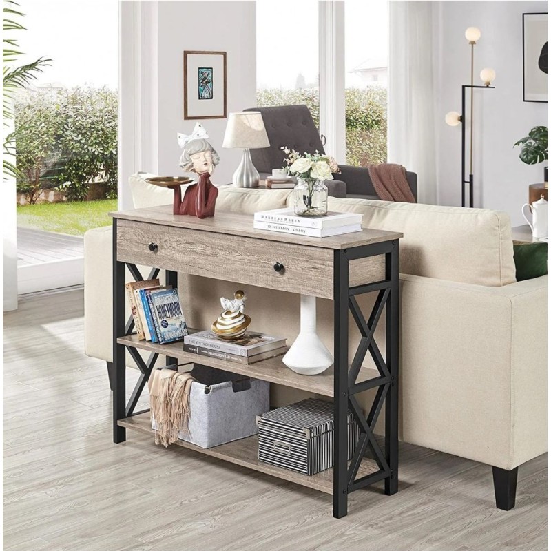 Консольний стіл Keivha створень для впорядкованого зберігання у вузьких просторах - прихожа, коридор, зона під зеркалом або консоль за диваном. Глибина 30 см не заважає проходу, а ширина 100 см дає простор для лампи, декору та ключниці. Великий шухляда приховує документи, окуляри та інші дрібниці, тоді як дві відкриті полиці тримають кошики, книги чи органайзери на виду. Стільниця й поліціці з ДСП 16 мм легко доглядаються, рамний каркас із профільної труби 20×40 мм забезпечує щоденну стабільність. Висота 80 см зручна у зв'язці з настінними зеркалами та картинами. Доступні відтінки ДСП - чорний, білий, дуб сонома, дуб родос, горіх. Доставка по Україні .