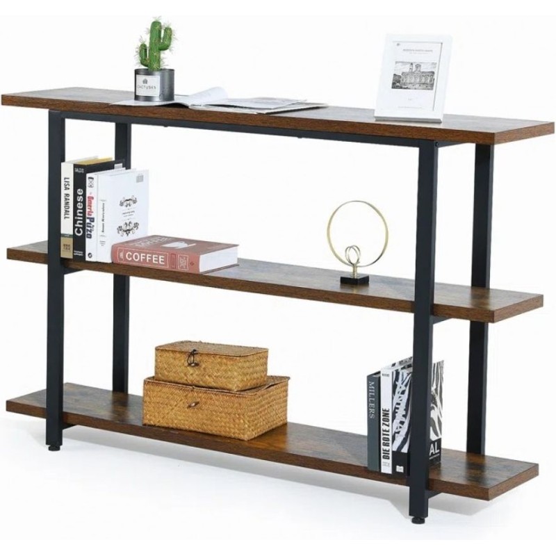 Консольний стіл Lucille - індустріальне рішення для прихожої, вітальні або як консоль за диваном . Формат 140×30×90 см забезпечує довгу поверхню для лампи, декору та ключниці, а три яруси допомагають підтримувати порядок: середня та нижня поліці вміщують кошики, книги та аксесуари. Стільниці із ДСП 16 мм легко доглядаються, рамний каркас із профільної труби 20×20 мм гарантує жорсткість та стабільність. Доступні чорний, білий, дуб сонома, дуб родос, горіх відтінки — просто вписати в лофт, мінімалізм чи сканді. Доставка по Україні та гарантію/сервіс .