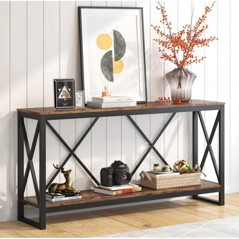Консольний стіл з відкритою поліцею - універсальне рішення для коридору, фойє чи вітальні. Верхня довга поверхня зручна для ламп, рамок і ваз, тоді як нижні відкриті полиці тримають під рукою кошики, журнали та аксесуари. Розміри 1800×300×900 мм забезпечують багато корисного місця без перевантаження проходу (на сторінці помилково вказано «1800 см» — корректно 1800 мм ). Основа — металевий каркас із труби 20×40 мм , що працює в парі з підвійною Х-спинкою та боковим кронштейном для додаткової стабільності; поліці з ДСП 16 мм прості у догляді. Доступні чорний, білий, дуб сонома, дуб родос, горіх відтінки, тому консоль легко поєднується з підлогою та меблями в лофт і сучасних інтер'єрах. Доставка по Україні та сервіс UkrLoft.