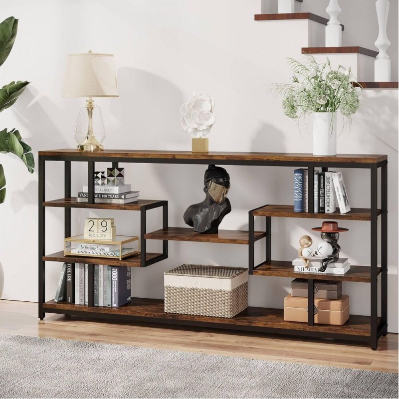 Консольний стіл поєднує мінімалістичну геометрію та щоденну зручність. Довжина 1800 мм та глибина 300 мм не заважають руху у вузьких проходах, а висота 900 мм комфортна для ламп, рамок та аксесуарів. Відкрита конструкція поліць допомагає швидко знаходити речі та підтримувати порядок — зверху для декору, внизу для книг чи кошиків. Основа — металевий каркас із труби 20×40 мм , поліці — ДСП 16 мм у коричневому відтінку. Регульовані ніжки (4 шт.) вирівнюють консоль і захищають підлогу від царапин. Модель органічно виглядає у сучасних та лофтових інтер'єрах: як диванна консоль, акцент у передпокої або вузька поверховка у робочій зоні. Доступні відтінки ДСП - чорний, білий, дуб сонома, дуб родос, горіх. Управління по Україні, сервіс UkrLoft.