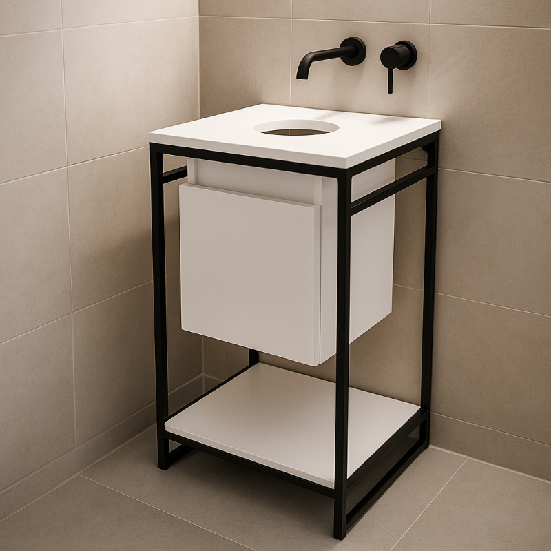 Тумба LOFT MA-23 поєднує лаконічну геометрію та щоденну практичність. Профільна сталева труба 20×20 мм забезпечує жорсткість і довговічність, ЛДСП 16 мм — приємну текстуру та легкий догляд. Габарити 600×400×750 мм ідеальні для компактних ванних: зручно монтувати накладний умивальник та зберігати необхідні речі на відкритих полицях. Доступні відтінки ДСП: чорний, білий, дуб сонома, дуб родос, горіх. Виробництво UkrLoft гарантує акуратні стики, рівні шви та можливість індивідуальних погоджень за розмірами/кольорами. Доступні відтінки ДСП - чорний, білий, дуб сонома, дуб родос, горіх. Доставка по Україні.