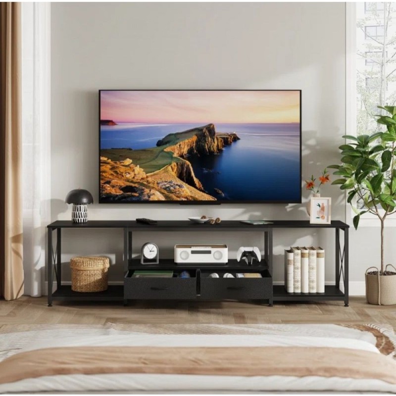 Тумба UkrLoft "до телевізорів 80 дюймів" - це поєднання стилю, комфорту та функціональності для великих телевізорів. Простора 180×55×40 см конструкція оснащена двома висувними ящиками для тканин, книг або мультимедійних пристроїв, а відкриті поліці дозволяють легко організувати зону зберігання. Металевий каркас (20×20 мм) забезпечує міцність, а полички з ДСП (16 мм) – надійність і довговічність. Цей мінімалістичний лофт-дизайн ідеально впишеться як у вітальні, так і в медіазоні. Наявністьчорний, білий, дуб сонома, дуб родос, горіх варіантів кольору додає варіативності оформлення — від сучасного скандинавського стилю до промислового шику.