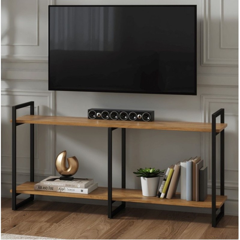 Підставка Mosely для телевізора до 65″ від UkrLoft – стильне та функціональне рішення у стилі лофт. Її габарити 140×62×40 см забезпечують достатньо місця для великих ТВ-пристроїв, медіатехніки та декоративних аксесуарів. Каркас із металевої труби 20×40 мм гарантує надійність, а полички з ЛДСП завтовшки 16 мм забезпечують стійкість та довговічність. Особливістю дизайну є дві відкриті поліці — ідеально підходять для мультимедійного обладнання та акуратної організації простору. Декоративні X-подібні елементи на ніжках надають виробу характерного індустріального шарму, роблячи його помітним акцентом лофт-інтер'єру. Доступні відтінки ДСП - чорний, білий, дуб сонома, дуб родос, горіх.