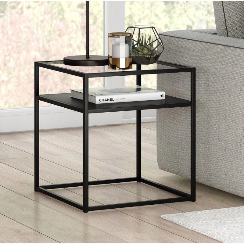 Приставний столик Ada Blackened — скло та метал у стилі лофт