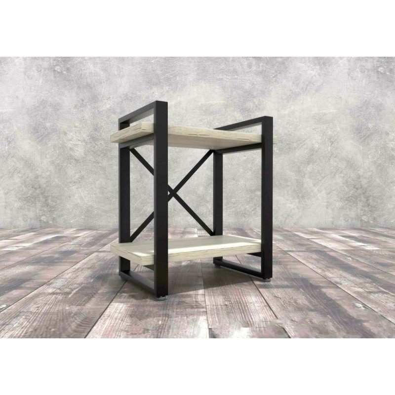 Приліжкова тумба лофт MSM, білий метал + світле ДСП, 2 полиці