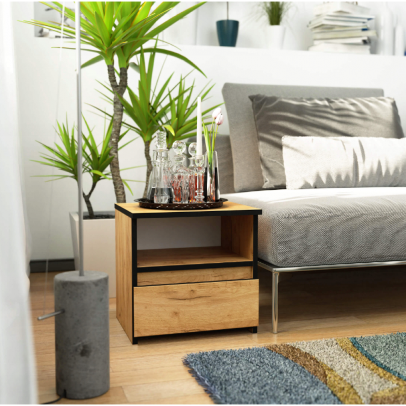 Тумбочка від виробника UkrLoft - це стильне та универсальне рішення для сучасних інтер'єрів у форматі loft. Конструкція виготовлена з міцного металевого каркаса , який забезпечує жорсткість і довговічність, та ДСП толщиною 16 мм , що додає виробу естетики та приємної фактури дерева. Тумба має відкриту нижню поліцю, що зручна для зберігання книг, органайзерів, декору чи повсякденних промов. Верхня плоскість ідеально підходить для лампи, квітки, годинників або чашки кофе. Завдяки лаконічним лініям і мінімалістичному дизайну модель легко вписується в спальню, гостину, офіс або студійний простір. Компактні розміри дозволяють розташувати тумбу біля ліжка чи дивана, а поєднання чорного металу та деревної текстури ДСП створює характерний лофт-настрій. UkrLoft - це фірмова якість виробника UkrLoft , яка поєднує практичність, міцність і сучасний стиль.