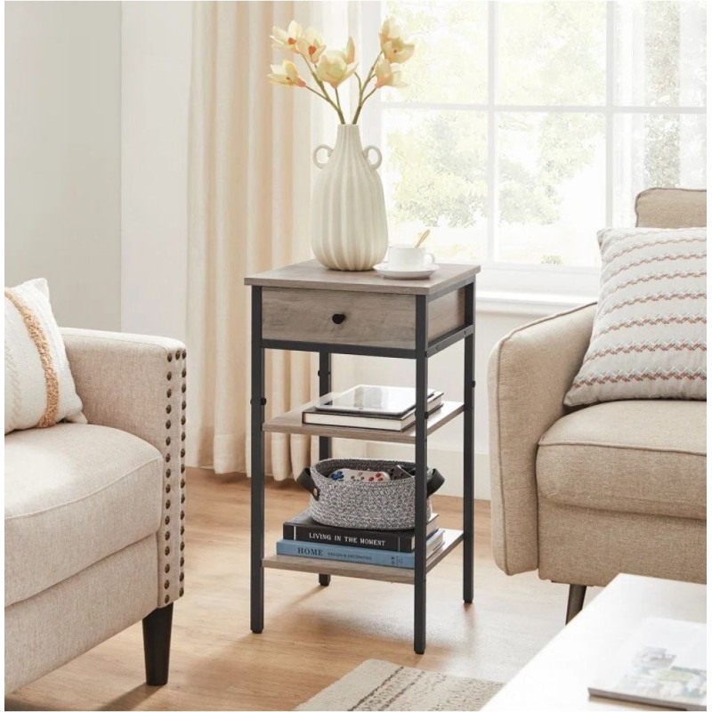 Стильна тумбочка у лофт-дизайні від виробника UkrLoft - це ідеальне рішення для спальні, вітальні чи домашнього кабінету. Модель оснащена зручним висувним ящиком та двома відкритими полицями, що дозволяє компактно організувати простір та тримати під рукою найнеобхідніші речі. Металевий каркас із профільної труби 20×20 мм забезпечує надійну стійкість та довговічність конструкції, а полички та фасад виконані з ДСП 16 мм у сучасній фактурі, яка гармонійно поєднується з мінімалістичною геометрією виробу. Завдяки розмірам 70×35×35 см тумбочка легко розміщується навіть у невеликих кімнатах, не перевантажуючи інтер'єр. Модель доступна у світлому та темному кольорах, що дозволяє підібрати варіант під будь-який стиль – від лофта до модерну. Тумбочка UkrLoft поєднує функціональність, сучасний вигляд та якісні матеріали, створюючи комфорт у вашому будинку щодня.
