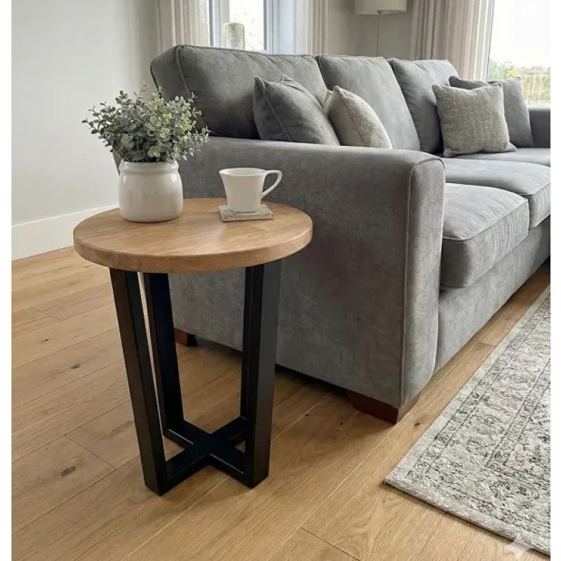 Круглий приставний столик у стилі Лофт (Ø 45 см) на металевому каркасі