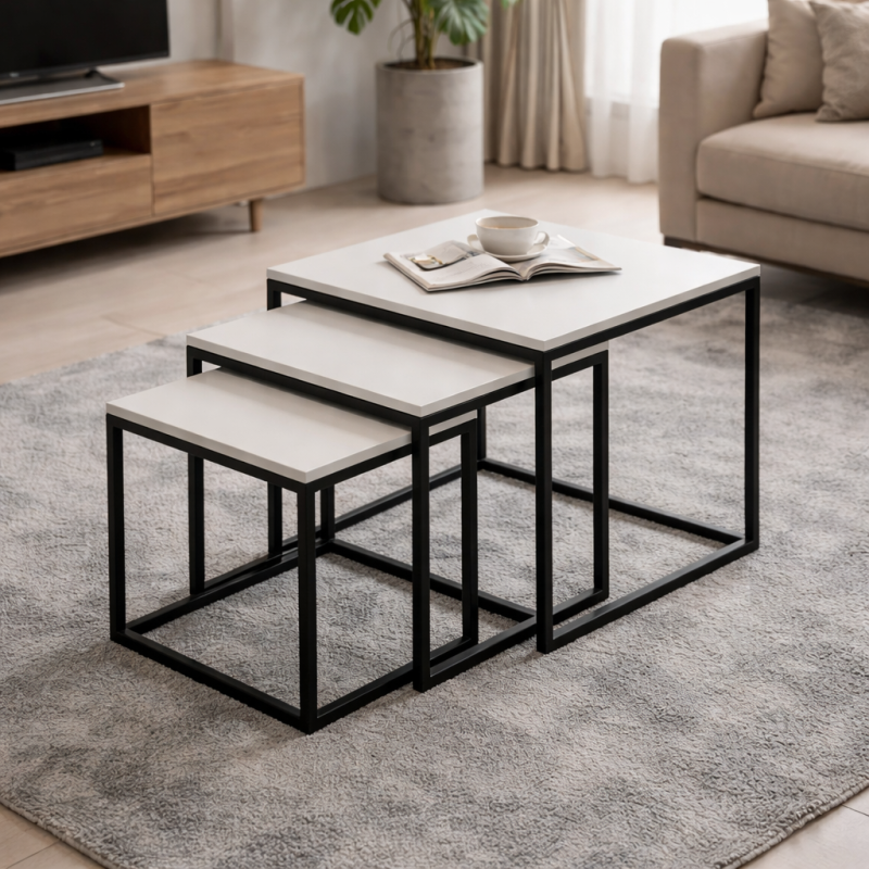 Набір "Tab-129" - це універсальний конструктор вашого комфорту. Комплект складається з трьох столиків різної висоти, які можна використовувати як єдину каскадну композицію або розставити по різних зонах кімнати. Це ідеальний вибір для тих, хто цінує гнучкість інтер'єру та стиль LOFT. Головна особливість моделі “Tab-129” – однакова глибина всіх елементів (40 см) при різній висоті та ширині. Це дозволяє зручно ховати менші столики під більші, звільняючи простір, або використовувати їх як серію приставних столиків біля дивану та крісел. Каркас виконаний із міцної металевої труби 20×20 мм , пофарбованої чорною порошковою фарбою. Це покриття стійке до ударів та іржі. Стільниці з ламінованої ДСП ( 16 мм ) не бояться вологи та легко очищаються від побутових забруднень. Ніжки столів оснащені спеціальними флісовими підкладками , тому ви можете сміливо пересувати меблі паркетом чи ламінатом без ризику царапин. Лаконічні форми пасують до будь-якого сучасного інтер'єру.