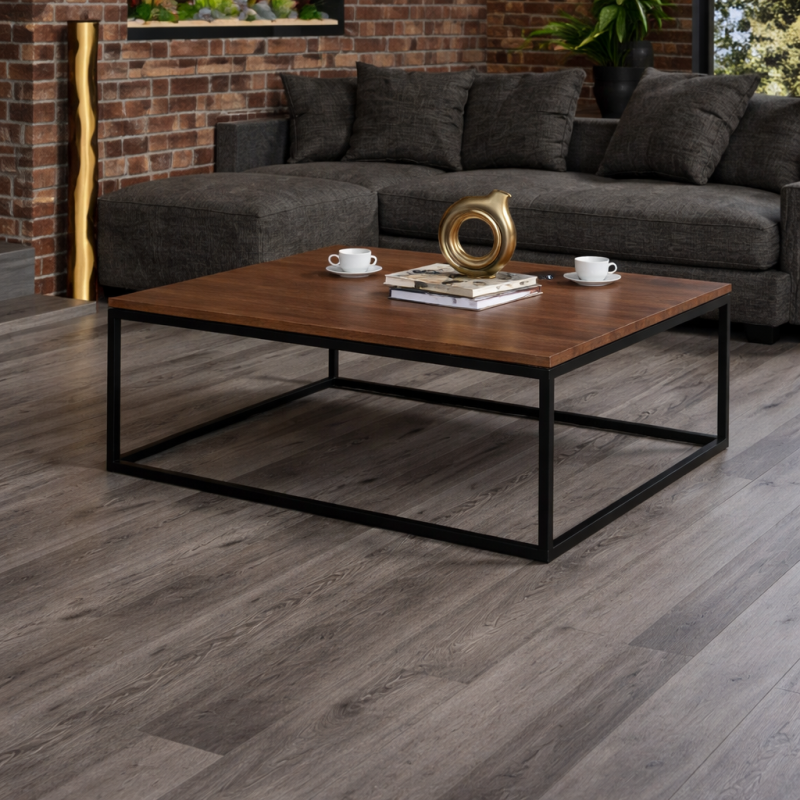 Журнальний стіл «Саутфілд Квадро» від ТМ UkrLoft — це просторий та стильний вибір для тих, хто цінує функціональну та естетику в інтер'єрі. Міцний металевий каркас із труби 20×20 мм забезпечує стійкість та довговічність, а ламінована ДСП завтовшки 16 мм у чорний, білий, дуб сонома, дуб родос, горіх декорі додає тепла та стильності. Розміри столу — 100 см × 100 см × 37 см — роблять його ідеальним центральним елементом у вітальні, кавовій зоні або між диванами. Поверхня легко очищується, матеріали надійні та довговічні. Незважаючи на великі габарити, дизайн із простими формами у стилі LOFT дозволяє столу гармонійно вписуватися в інтер'єр, не перевантажуючи простір