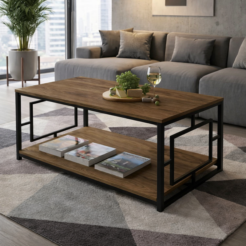 Журнальний столик GeoWood із колекції UkrLoft — це взірець того, як меблі можуть бути одночасно стильними та максимально корисними. Ця модель розроблена для просторих віталень та офісних зон очікування, де важливо поєднати комфорт з індустріальним дизайном. Велика поверхня розміром 120х60 см дозволяє вільно розмістити ноутбук, настільні ігри або організувати чаювання для великої компанії. Нижня полиця: це ваше рішення для підтримки порядку. Зберігайте тут журнали, пульти, пледи чи книги, залишаючи верхню частину столу вільною та чистою. Виконання із металевої труби 20×20 мм . Чорне матове покриття надає виробу графічності та захищає метал. Виготовлені з якісного ДСП 16 мм , яке легко чиститься та стійке до знесення. Виберіть варіант, що ідеально пасує вашому інтер'єру. Стільниця та поліця доступні у популярних декорах. Вибираючи GeoWood від UkrLoft , ви отримуєте міцну, стильну та функціональну меблі з гарантією від виробника.